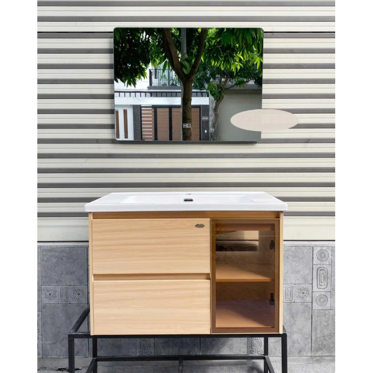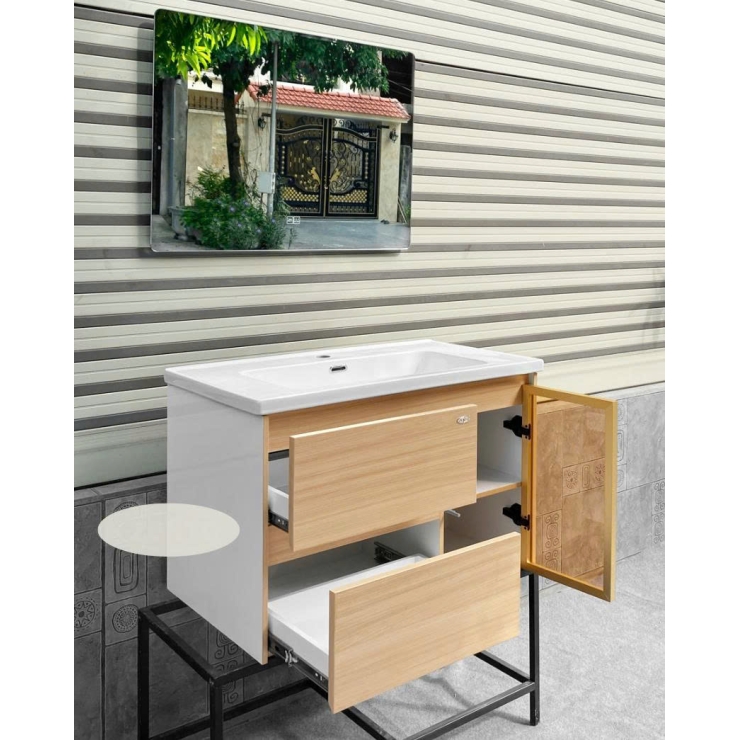 Bộ sản phẩm gồm chậu lavabo, tủ, gương. (Không kèm theo vòi chậu, xi phông hay ống xả).