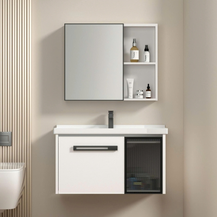 Tủ Đá Trắng 60 + LB20 + Tủ Gương 60cm LUSENTER (TLVB24)