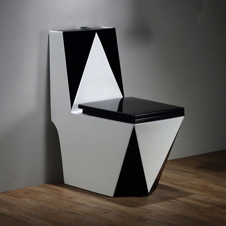 Tên sản phẩm: Bồn Cầu Một Khối Kim Cương Men Sứ Trắng Đen