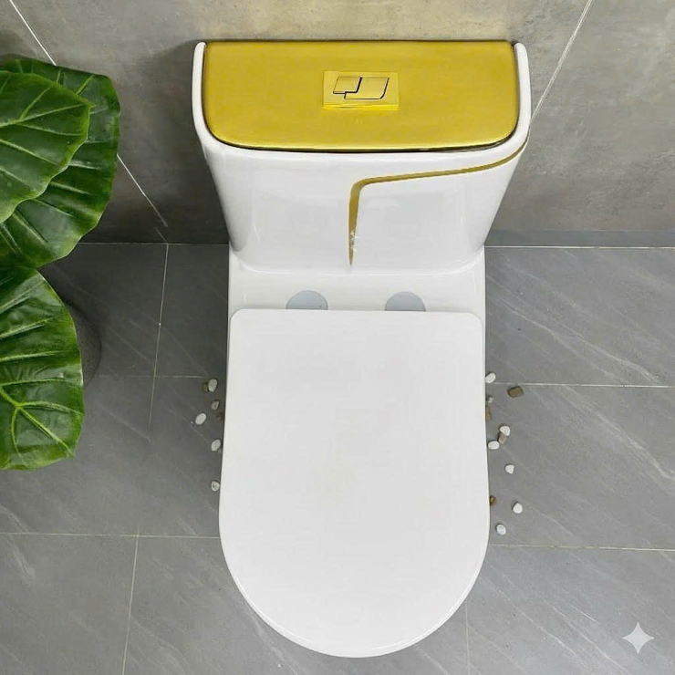 Bồn Cầu Một Khối Trắng Sọc Vàng LUSENTER (BCMK13)