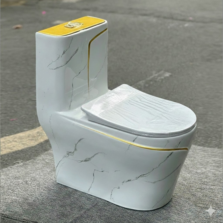 Bồn Cầu Một Khối Trắng Sọc Vàng Vân Xám LUSENTER (BCMK45)