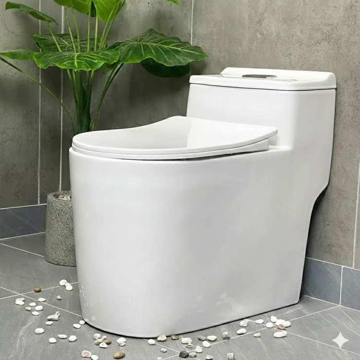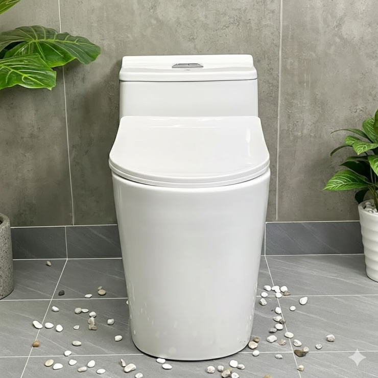 Bồn Cầu Một Khối Trăng Sứ Nút Vuông LUSENTER (BCMK46)