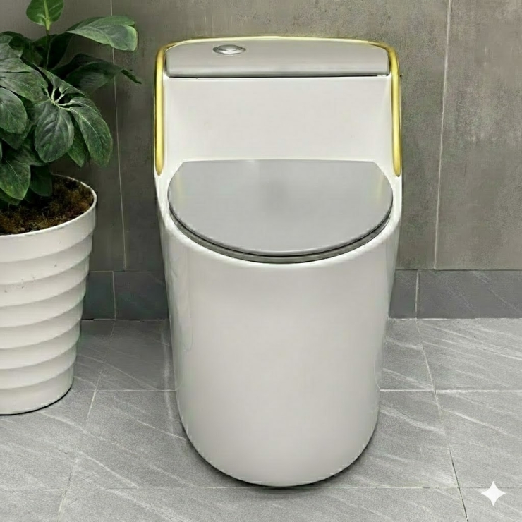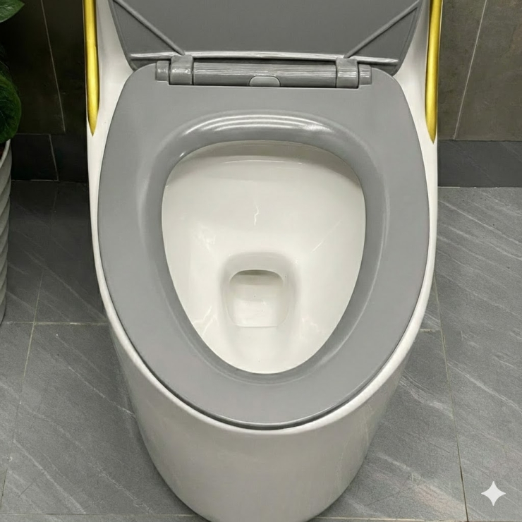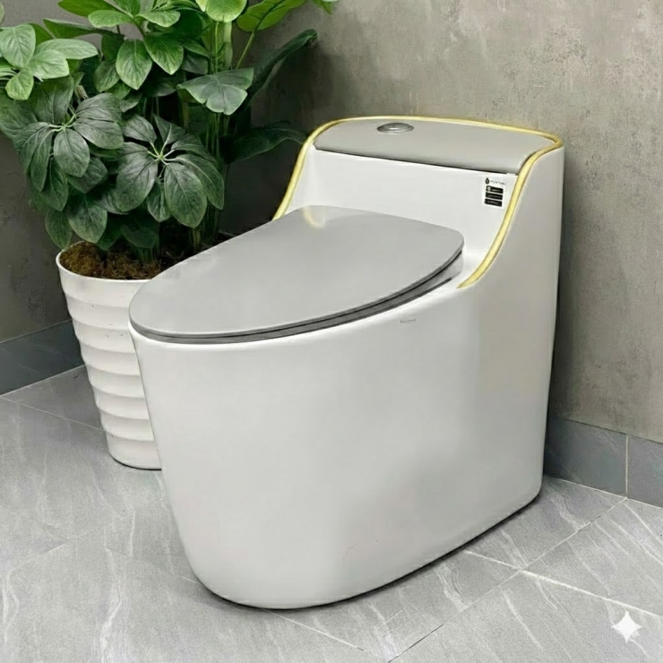 Bồn Cầu Một Khối Trắng Viền Vàng Năp Xám LUSENTER (BCMK33)