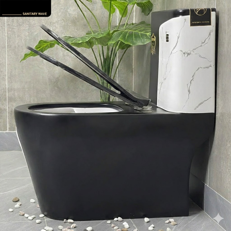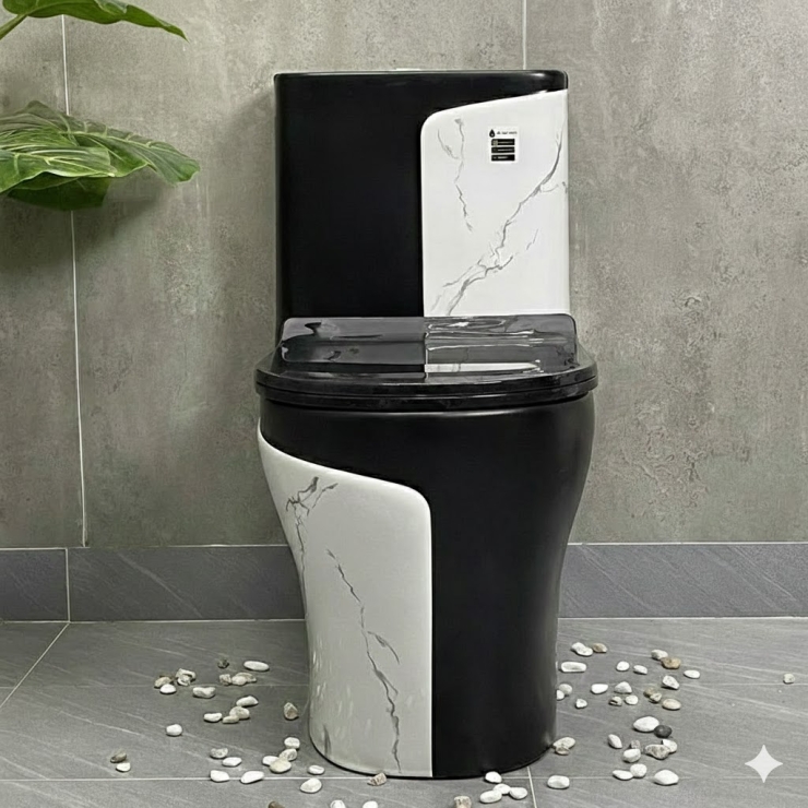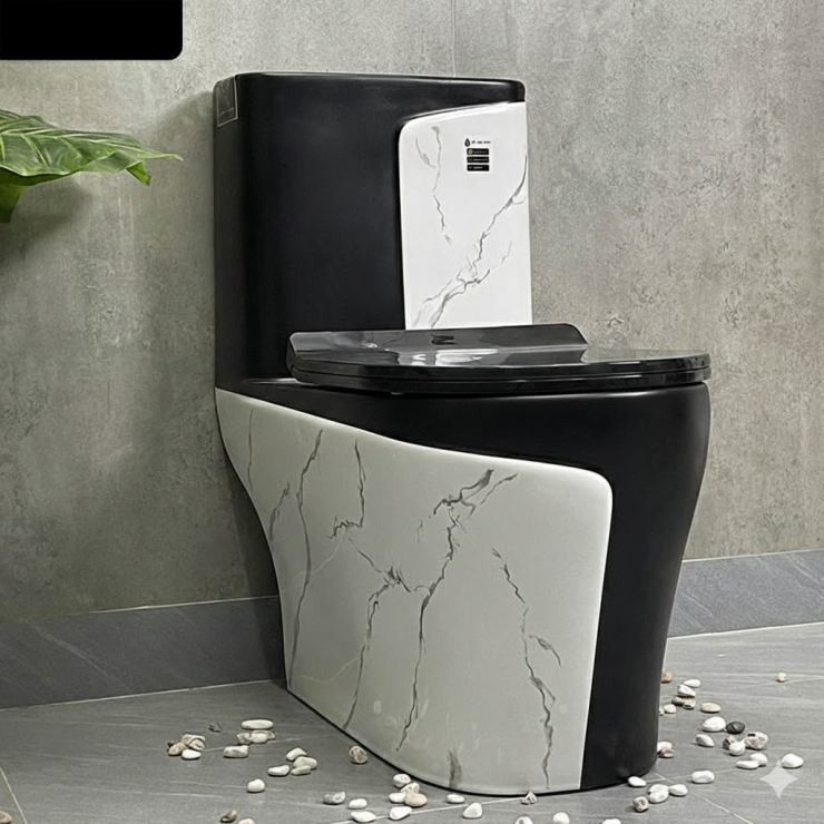 Bồn Cầu Một Khối Vân Đá Trắng Đen LUSENTER (BCMK09)