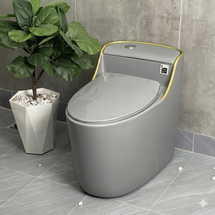 Bồn Cầu Một Khối Xám Viền Vàng LUSENTER (BCMK35)