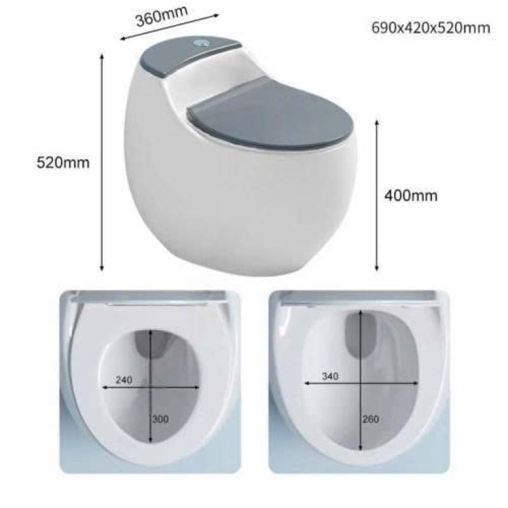 Bồn Cầu Trứng 1 Khối Trắng Nắp Xám BCT14