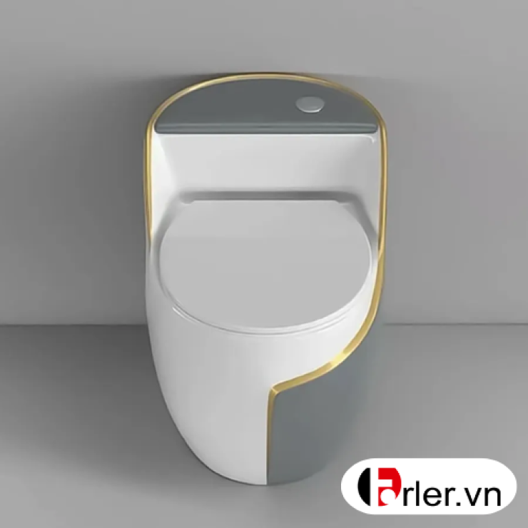 Bồn Cầu Trứng Trắng Xám Sọc Vàng FORLER (BCT19)