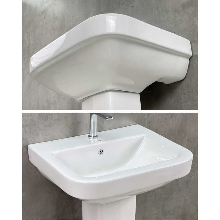 - Chân chậu giúp che đi phần ống xả tạo không gian sang trọng, hiện đại hơn đồng thời là giá đỡ cho phần chậu bên trên thêm chắc chắn.