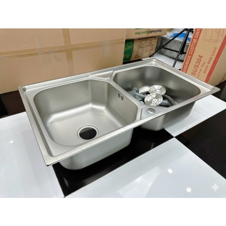 - Thiết kế 2 hố rộng rãi: Giúp bạn thoải mái phân chia không gian sơ chế thực phẩm và rửa bát đĩa riêng biệt, đảm bảo vệ sinh.