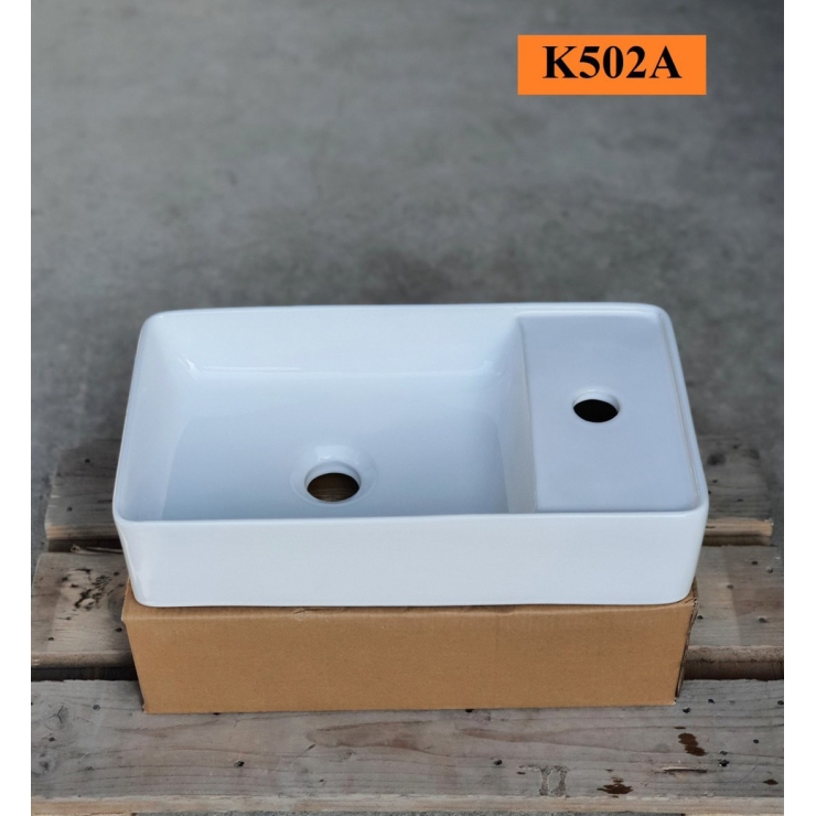 - Kiểu dáng: Chữ nhật vuông vắn kết hợp 1 cạnh để vòi nước, tạo sự nhỏ gọn, thông thoáng dành cho không gian hẹp