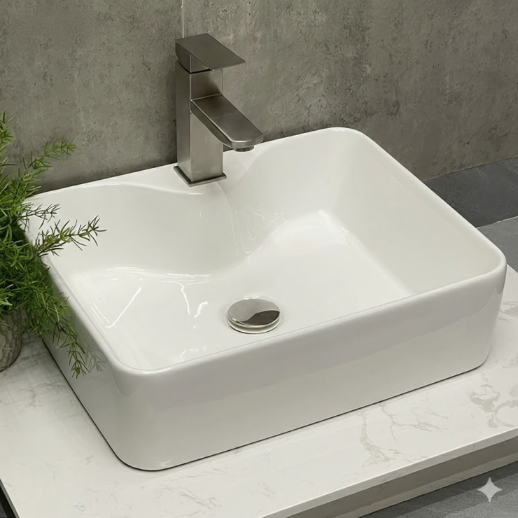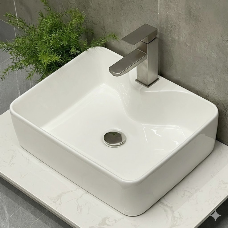 Lavabo Đặt Bàn Trắng Chữ Nhật LUSENTER (LB57)