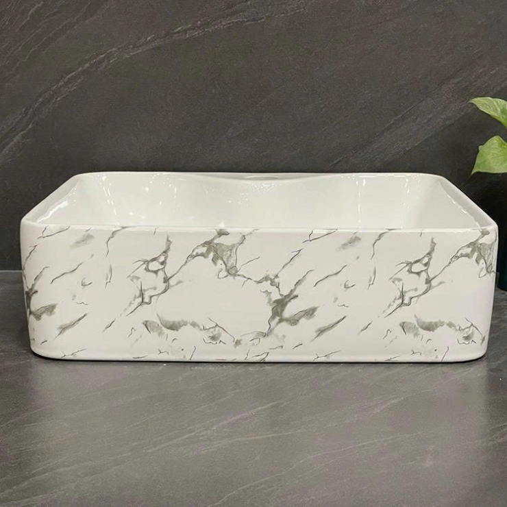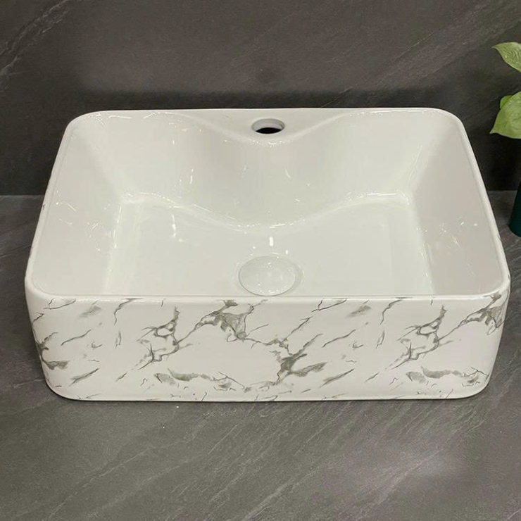 Lavabo Chữ Nhật Vân Đá Trắng Đốm LUSENTER (LB45)