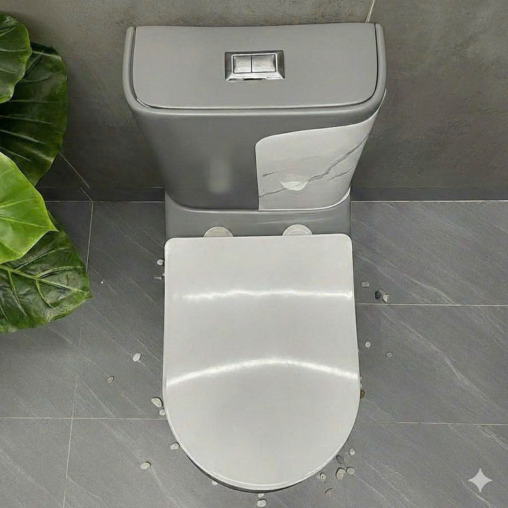Bồn Cầu 1 Khối Xám Sọc Vân Đá LUSENTER (BCMK08)