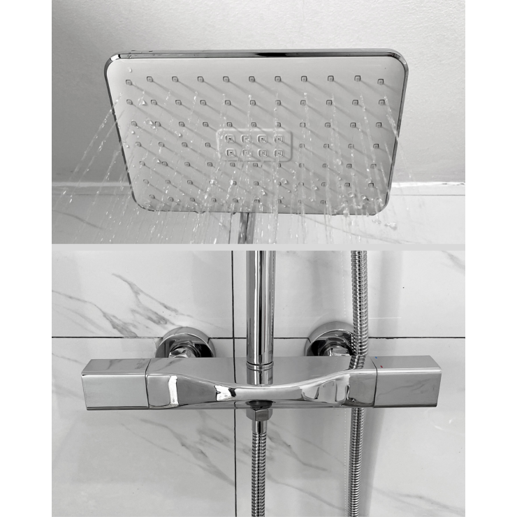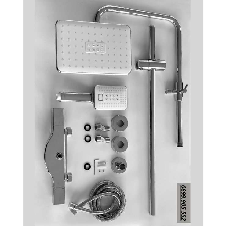 - Bộ sản phẩm gồm: 1 củ sen, 1 dây dẫn nước, 1 tay sen, 1 bát sen, 1 bộ ống đứng, ốc nối và các vít đi kèm.