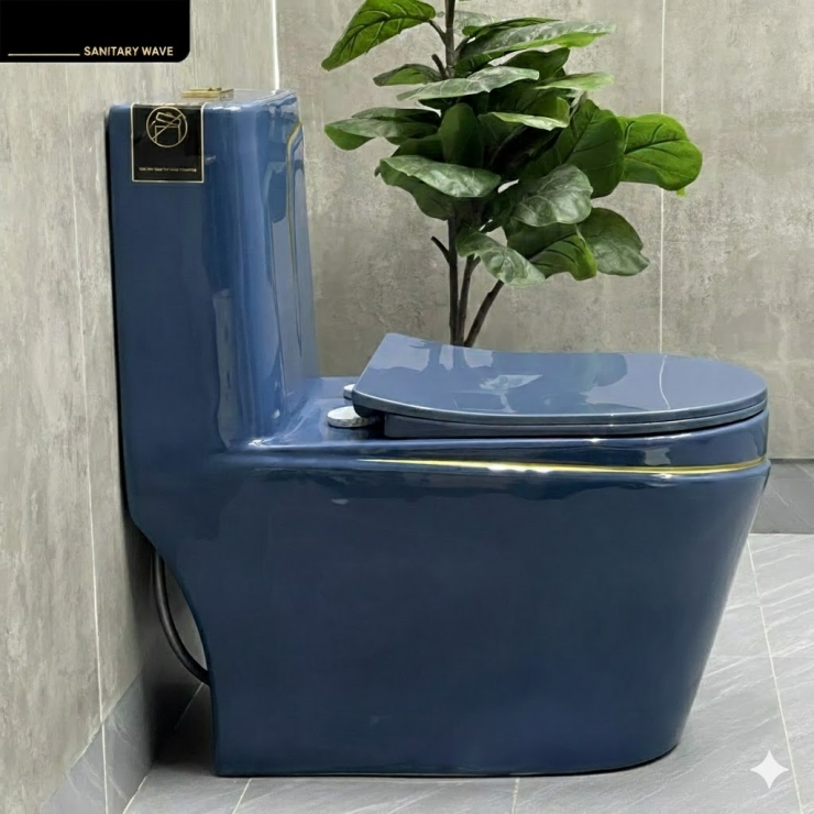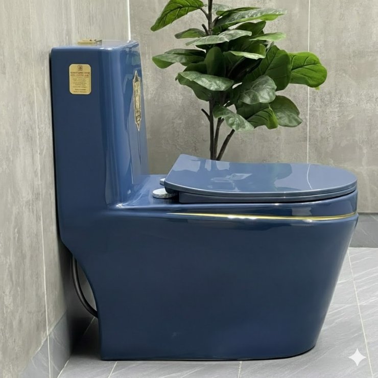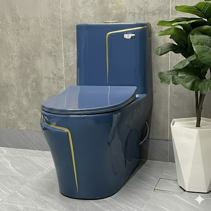 Bồn Cầu Một Khối Xanh Sọc Vàng LUSENTER (BCMK10)