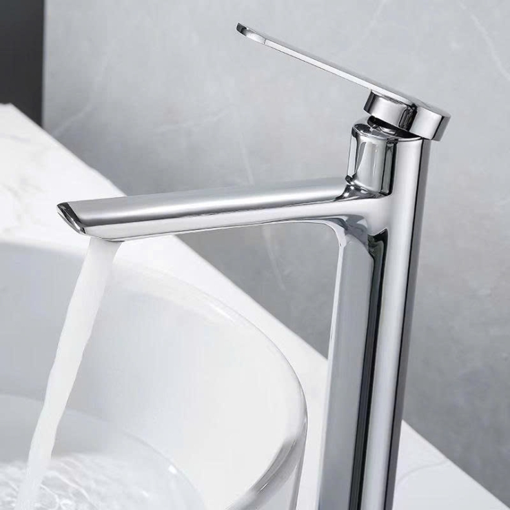 Vòi Lavabo Nóng Lạnh cao 30cm INOX 304 Bóng (VLB102)