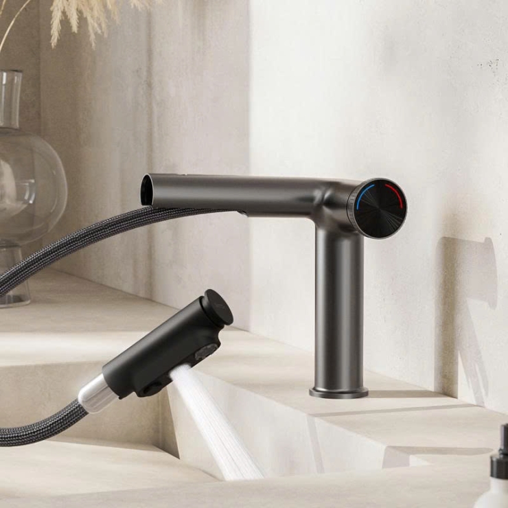 Vòi Nóng Lạnh Dây Rút Xám Nano Sơn Tĩnh Điện (VLB112)