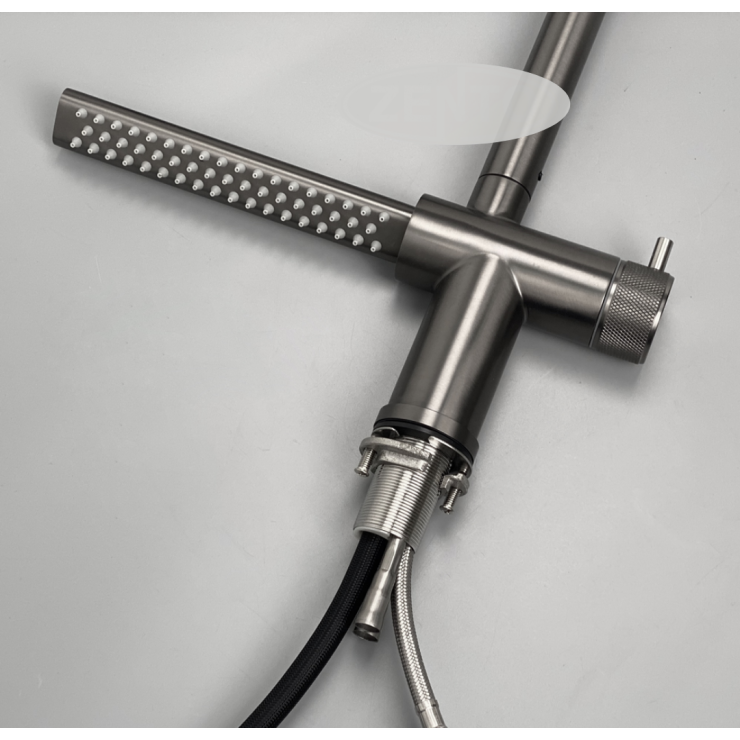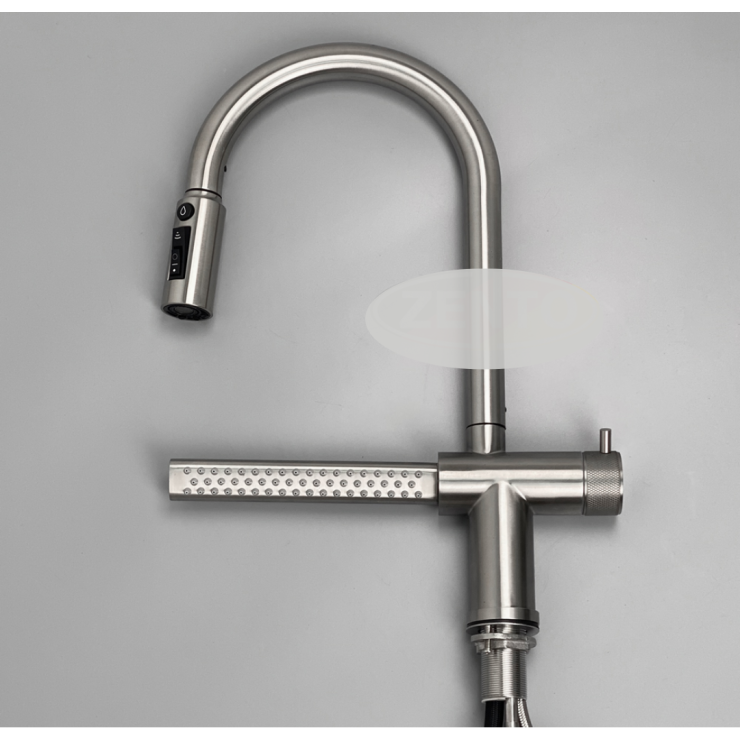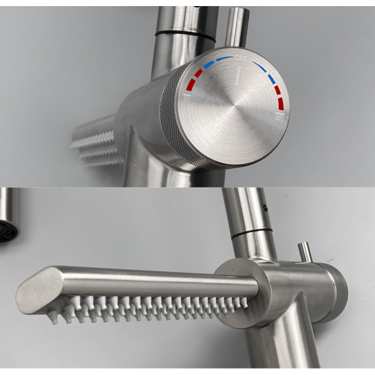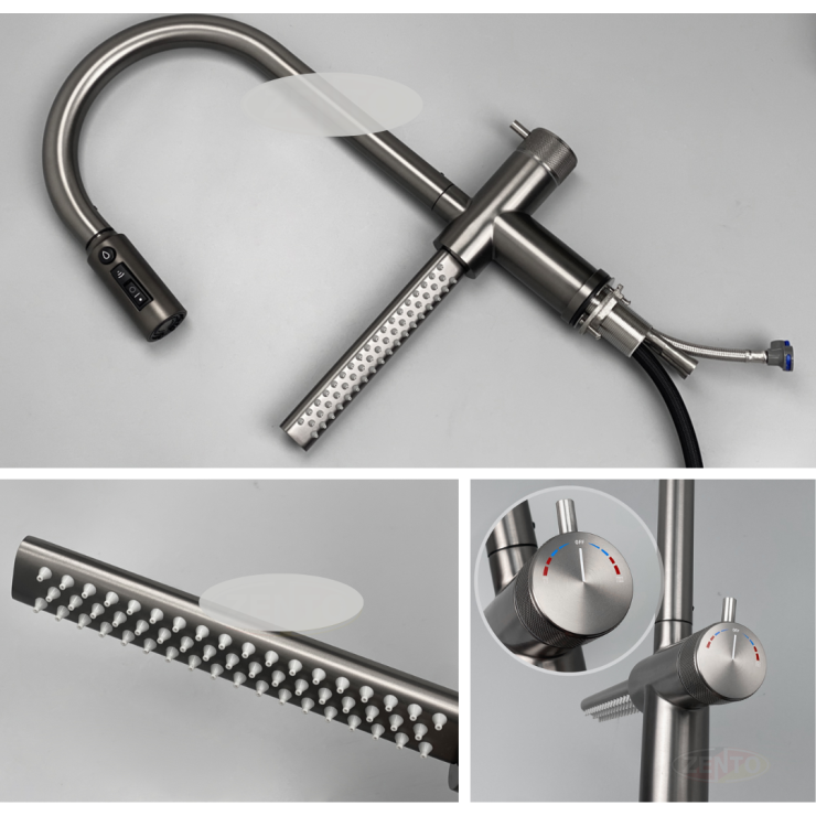 - Thiết kế đặc biệt vừa có thể sử dụng như những vòi rửa bát thông thường vừa có thể kéo dài như vòi sen cho công việc rửa chén bát, rau củ & lấy nước để đun nấu linh hoạt hơn.