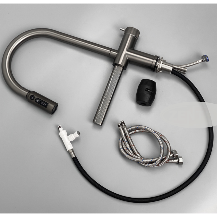 Vòi Rửa Chén 3 Đường Nước Nano Xám & Inox Mờ (VC69)