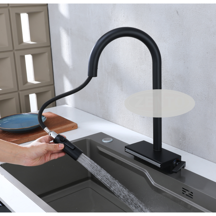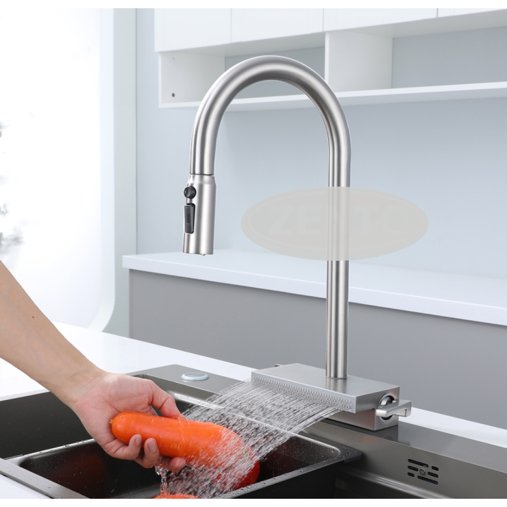 - Thiết kế đặc biệt vừa có thể sử dụng như những vòi rửa bát thông thường vừa có thể kéo dài như vòi sen cho công việc rửa chén bát, rau củ & lấy nước để đun nấu linh hoạt hơn.