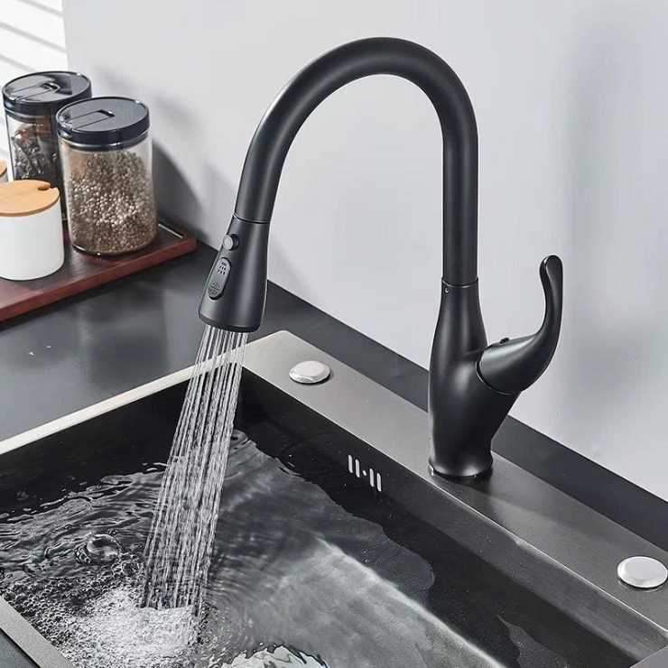 - Thiết kế đặc biệt vừa có thể sử dụng như những vòi rửa bát thông thường vừa có thể kéo dài như vòi sen cho công việc rửa chén bát, rau củ & lấy nước để đun nấu linh hoạt hơn.