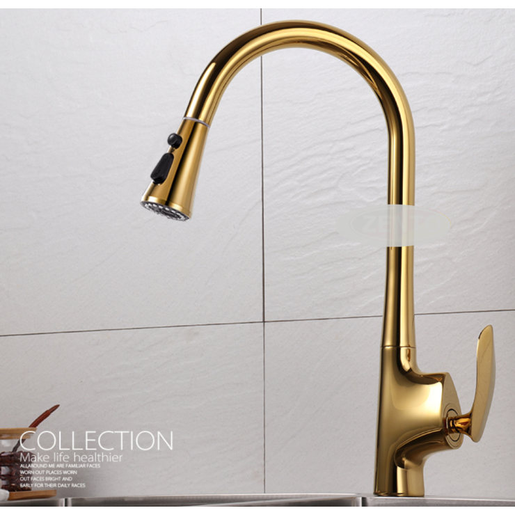 Vòi Rửa Chén Bát Nóng Lạnh Dây Rút Vàng Đồng (VC80)