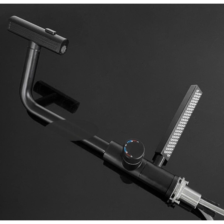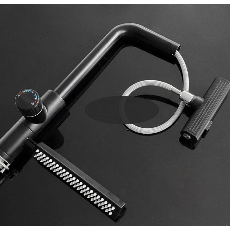 Vòi Rửa Chén Dây Rút Nóng Lạnh Sơn Tĩnh Điện Đen (VC85)