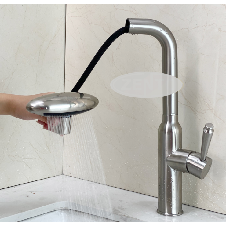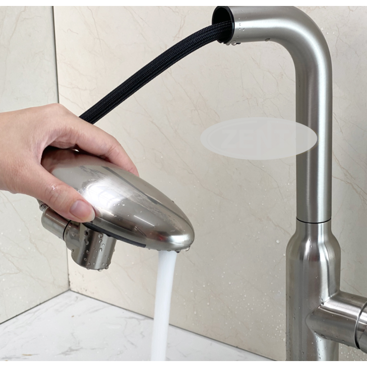 - Thiết kế đặc biệt vừa có thể sử dụng như những vòi rửa bát thông thường vừa có thể kéo dài như vòi sen cho công việc rửa chén bát, rau củ & lấy nước để đun nấu linh hoạt hơn.