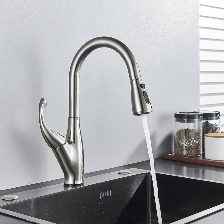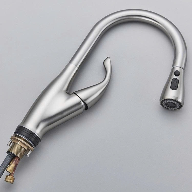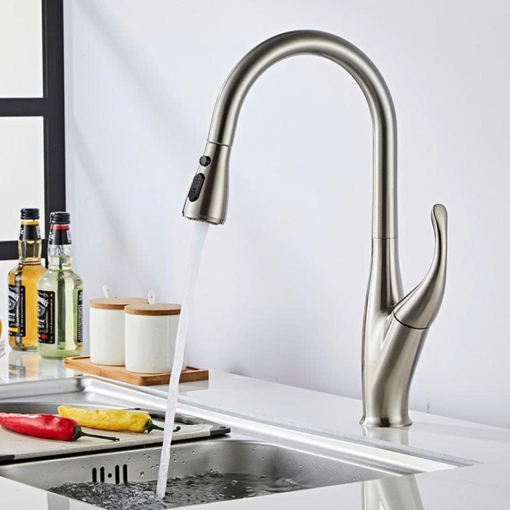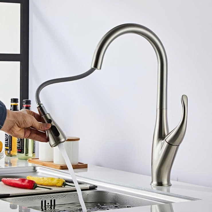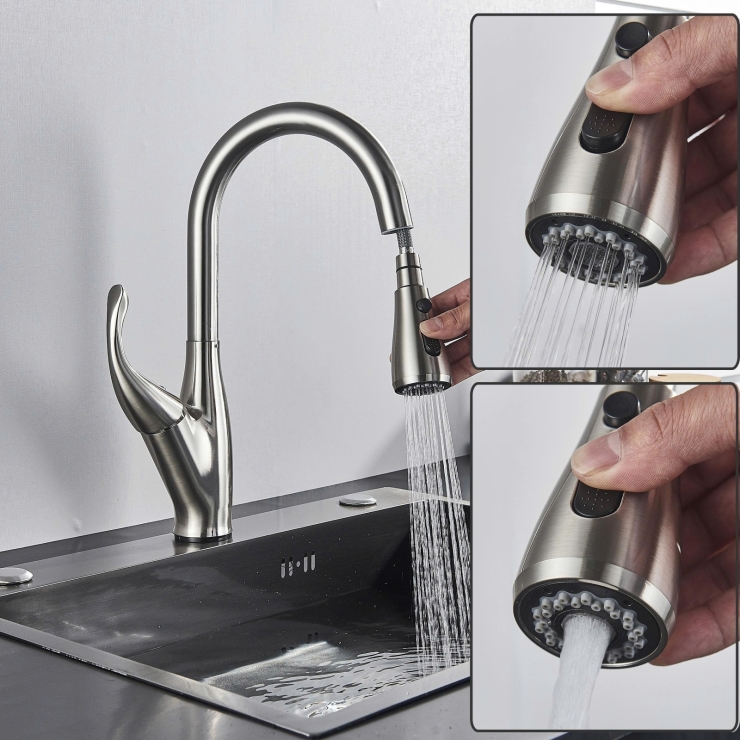 * Đầu vòi có thể kéo ra ngoài, có 2 chế độ chảy, tăng áp và thông thường